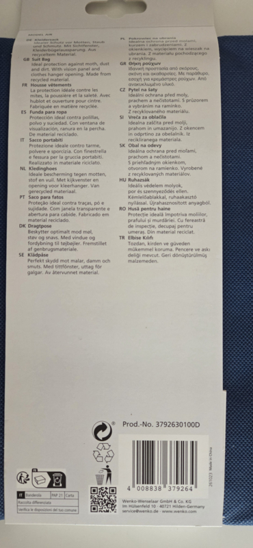 Ideale bescherming tegen motten, zilvervisjes, stof en vuil. Met kijkvenster en opening voor kledinghanger.